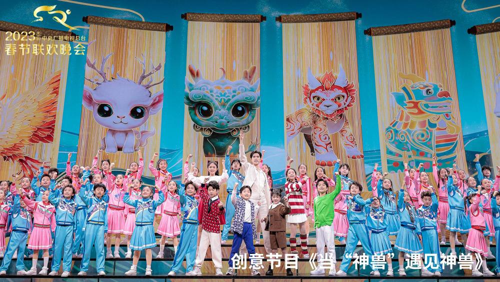 创意节目《当“神兽”遇见神兽》以《山海经》《抱朴子》《史记》等中国古典典籍中的吉祥神兽为原型,结合VR技术、国潮绘画,设计出麒麟、凤凰、白泽、貔貅等中国神兽形象,让孩子们从“神兽”身上汲取勇敢奋进、自强自信的精神力量。