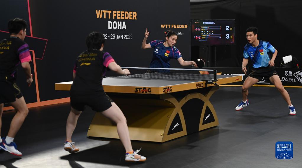 当日,在卡塔尔多哈进行的2023年WTT多哈支线赛混合双打决赛中,中国组合蒯曼/林诗栋以3比2战胜队友钱天一/向鹏,夺得冠军。