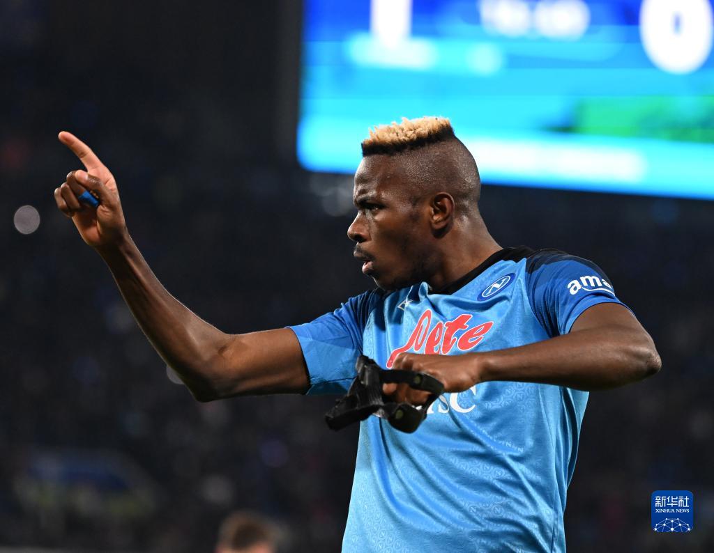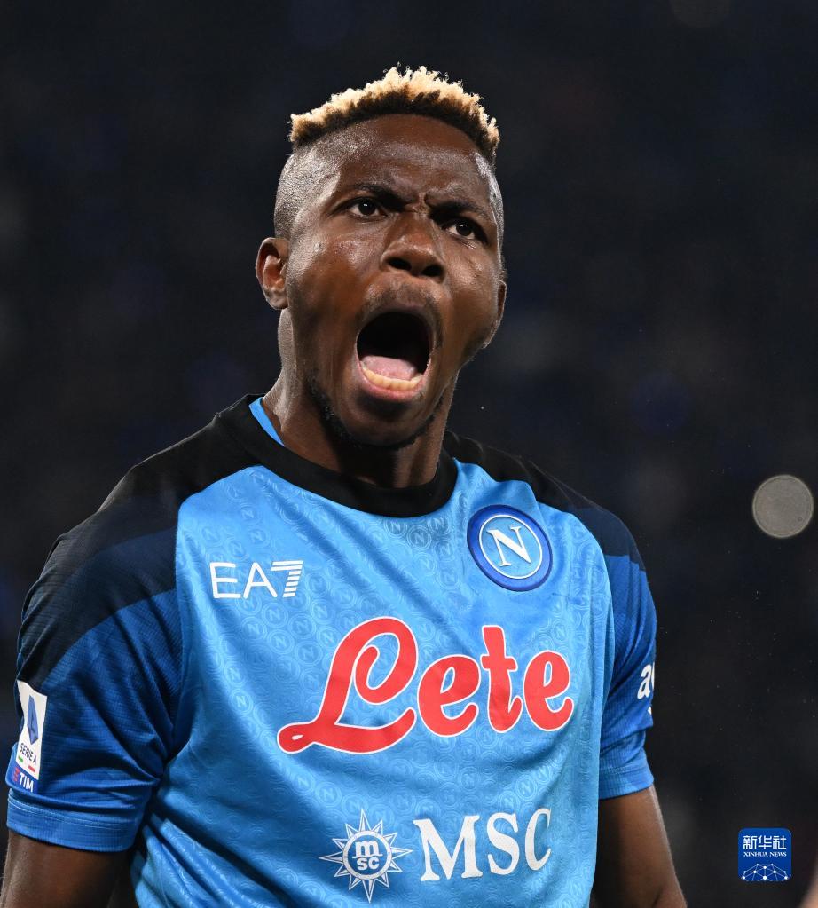 1月29日,那不勒斯队球员奥斯梅恩进球后庆祝。新华社发(阿尔贝托·林格利亚摄)
