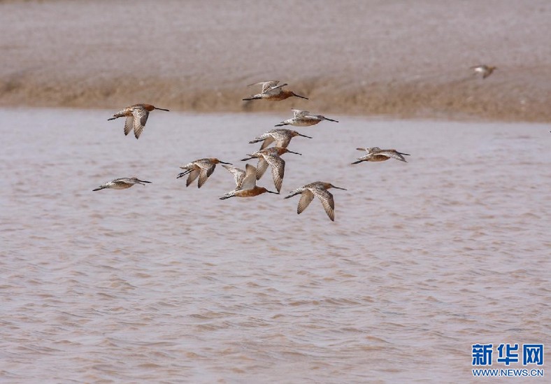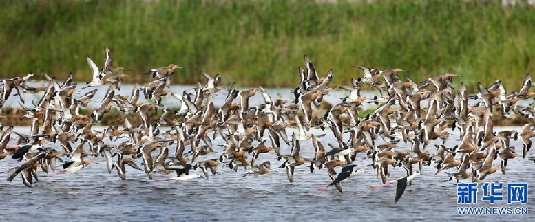 每年,会有一批又一批的“湿地过客”不断造访这里,正在经历长途旅行的鸟儿们会在这里稍作停留,补给营养。黑尾塍鹬便是其中一员。新华网发