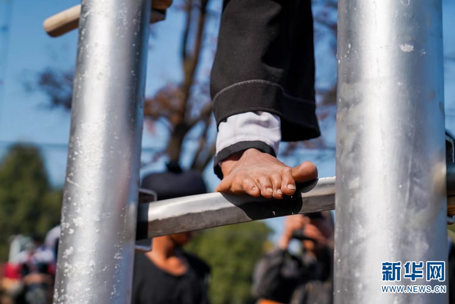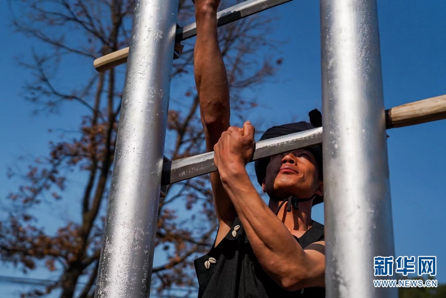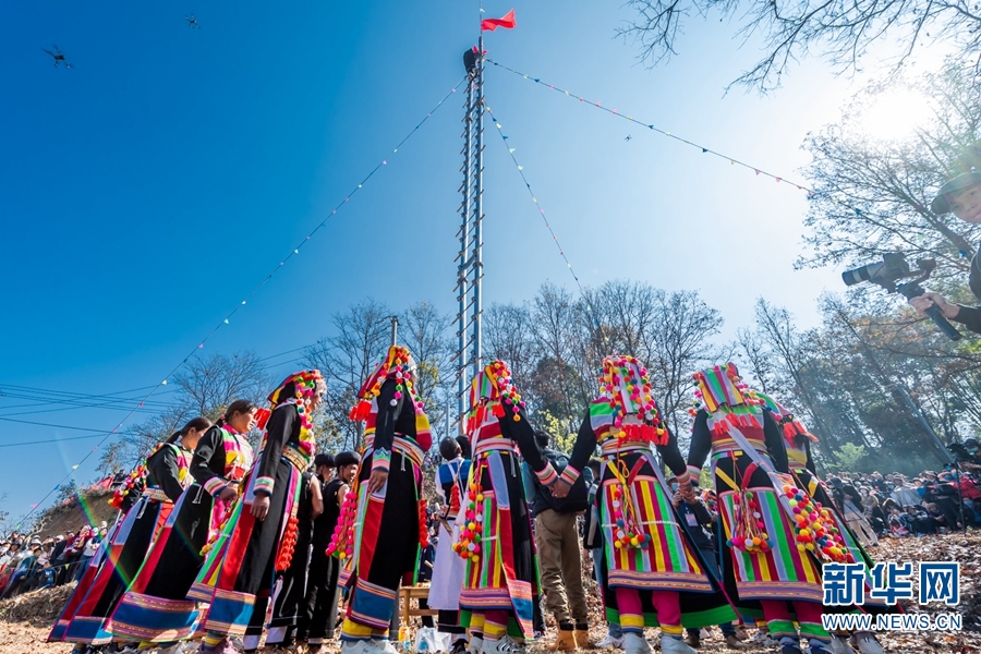 傈僳族同胞“上刀山”庆祝节日(摄于1月30日)。新华网发(陇川县融媒体中心 供图)