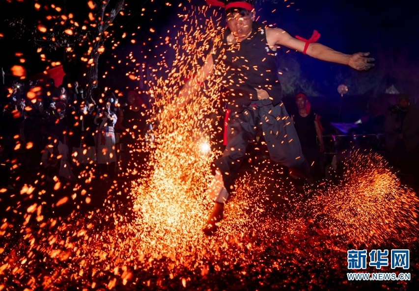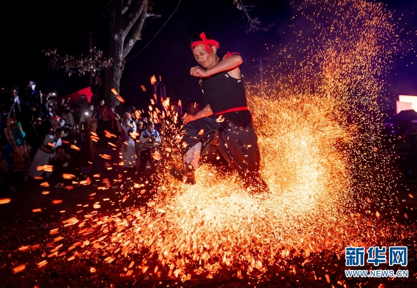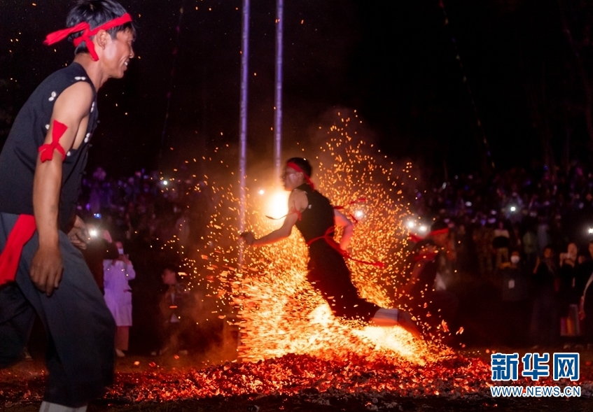 傈僳族同胞“下火海”庆祝节日(摄于1月30日)。新华网发(陇川县融媒体中心 供图)