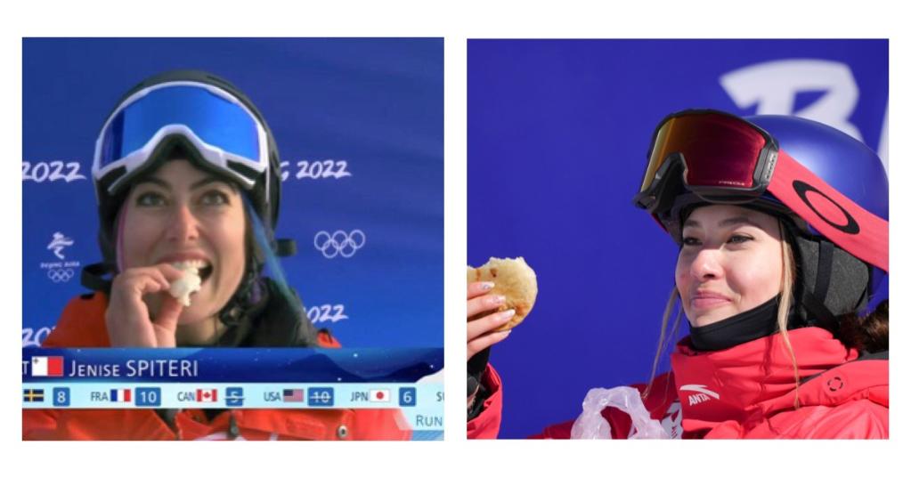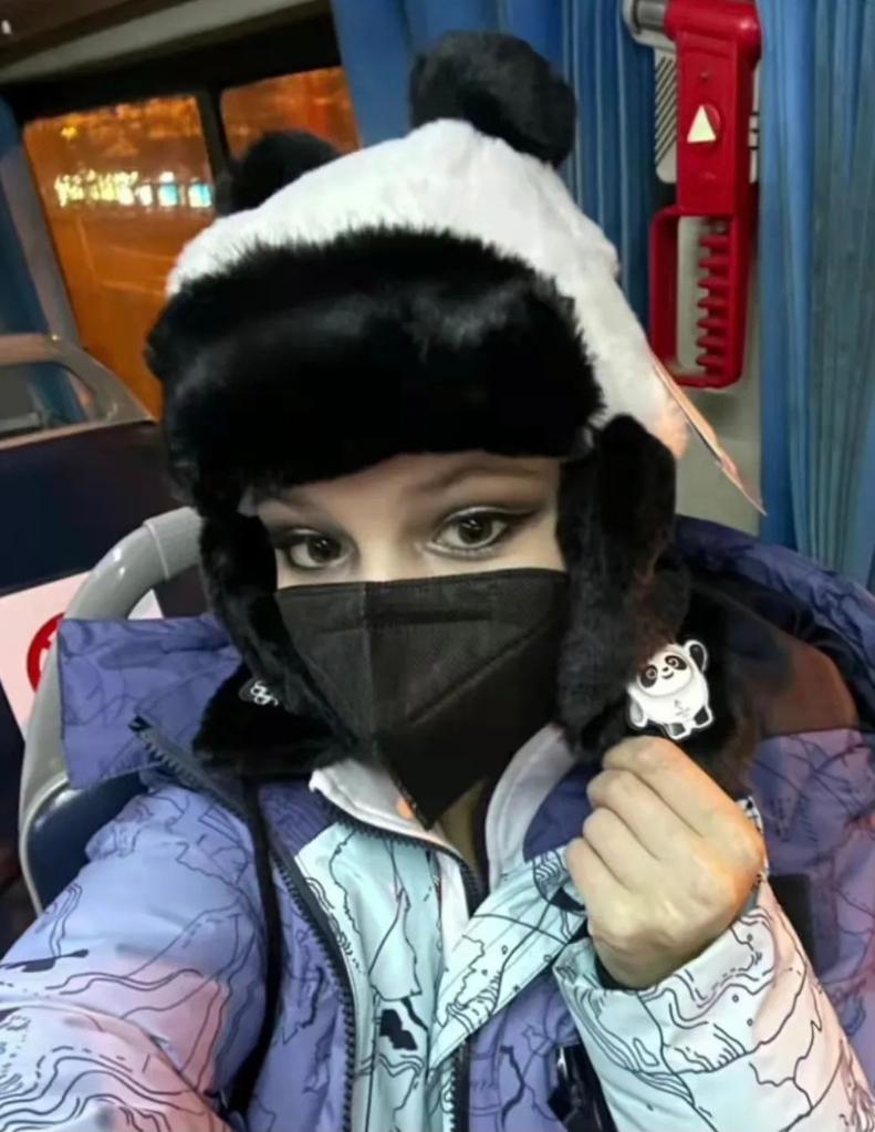 ↑俄罗斯奥委会选手安娜·谢尔巴科娃展示中国花样滑冰运动员金博洋赠送的礼物。