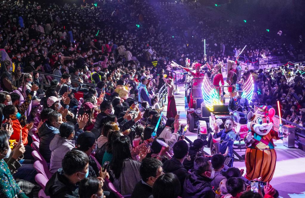 游客在广州长隆旅游度假区游园看马戏表演(2022年12月31日摄)。新华社记者刘大伟摄