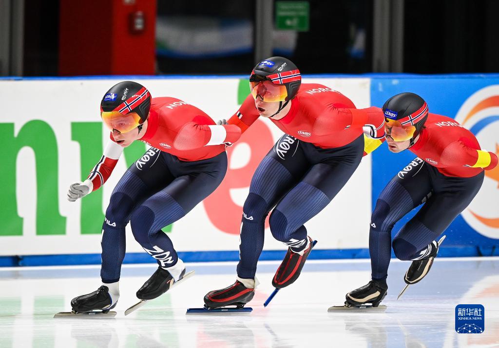 2月10日,挪威队选手在男子团体追逐A组比赛中,他们以3分42秒70的成绩获得冠军。