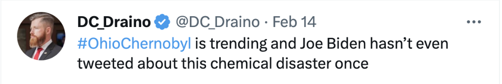 还有网友质问,“俄亥俄切尔诺贝利”都上“热搜”了,还不见总统拜登的社交媒体账号有何动静。