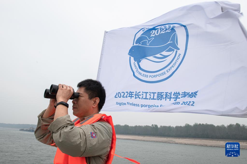 2022年9月23日,科考人员在湖北石首水域进行观测工作。