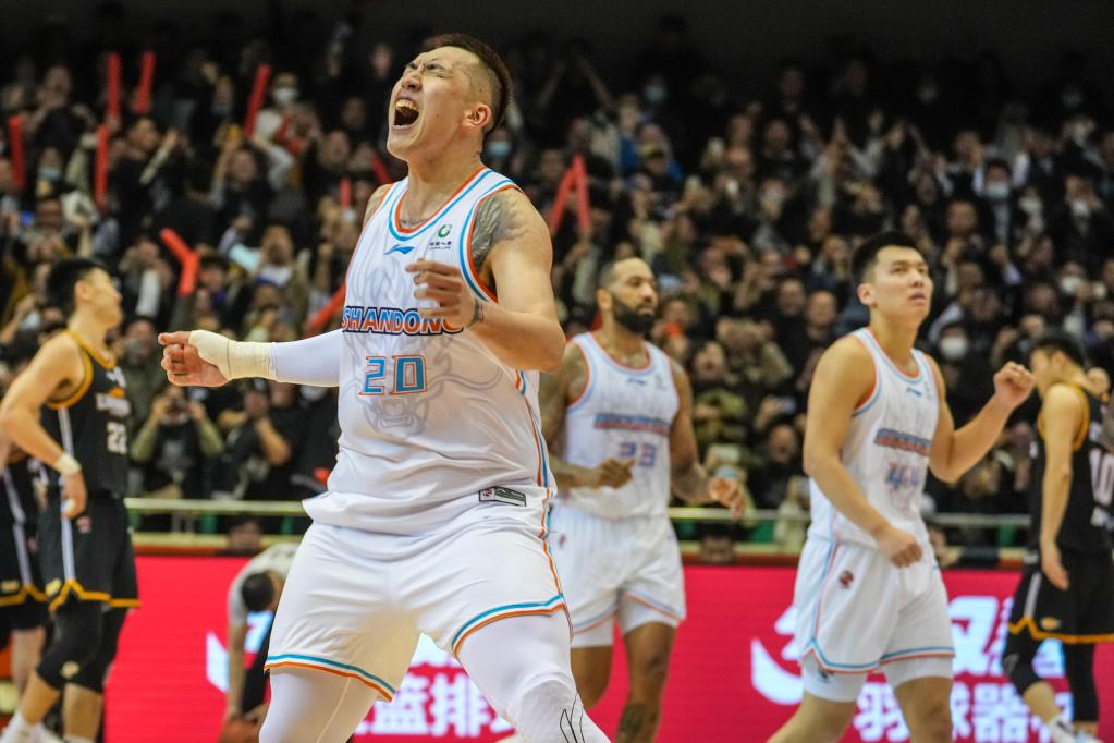 3月1日,山东队球员陶汉林在比赛中庆祝得分。新华社记者朱峥摄