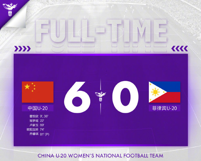 本场中国队完全掌控了局面。霍悦欣在上半场打进两球,邹梦瑶也打进一球。下半场比赛,卢家玉、欧阳玉环和乔睿琪各入一球,帮助中国队轻松取胜。