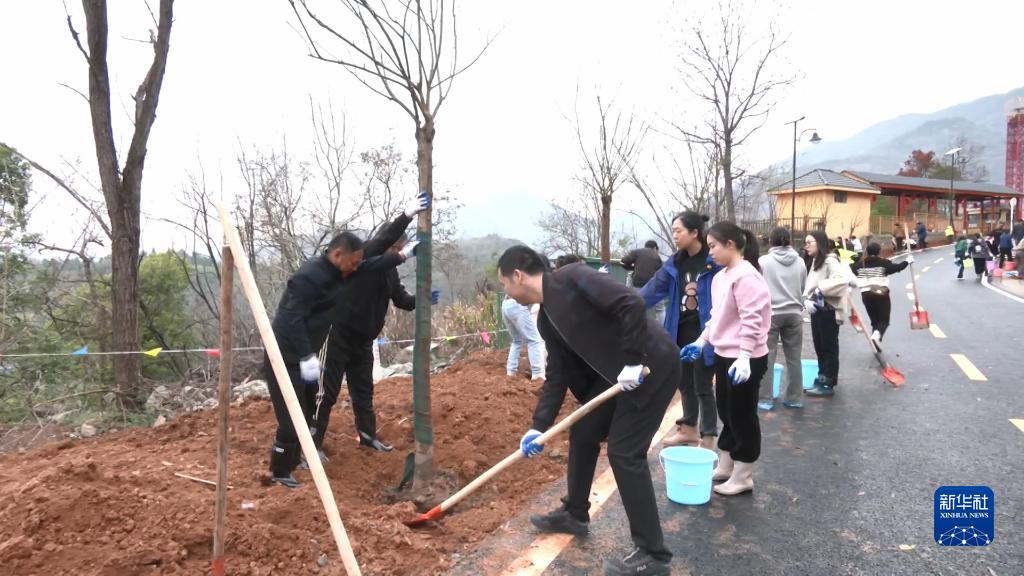 3月11日,大冶铁矿工人在曾经工作过的地方植树造林。新华社发 (陈田浩 摄)