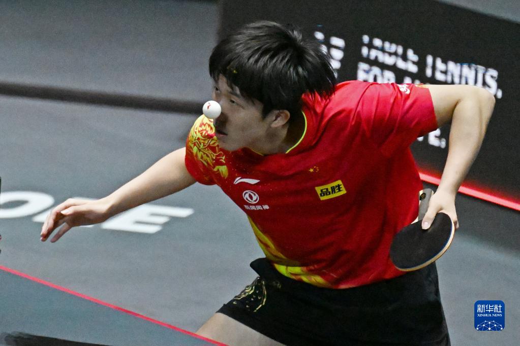 3月13日,王楚钦在比赛中回球。新华社发(邓智炜摄)