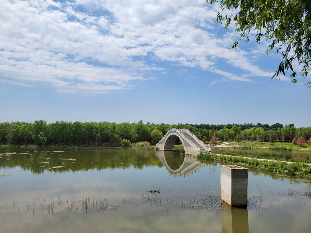 在济南市槐荫区玉清湖街道睦里庄,小清河两岸景色宜人。新华社记者栗建昌 摄