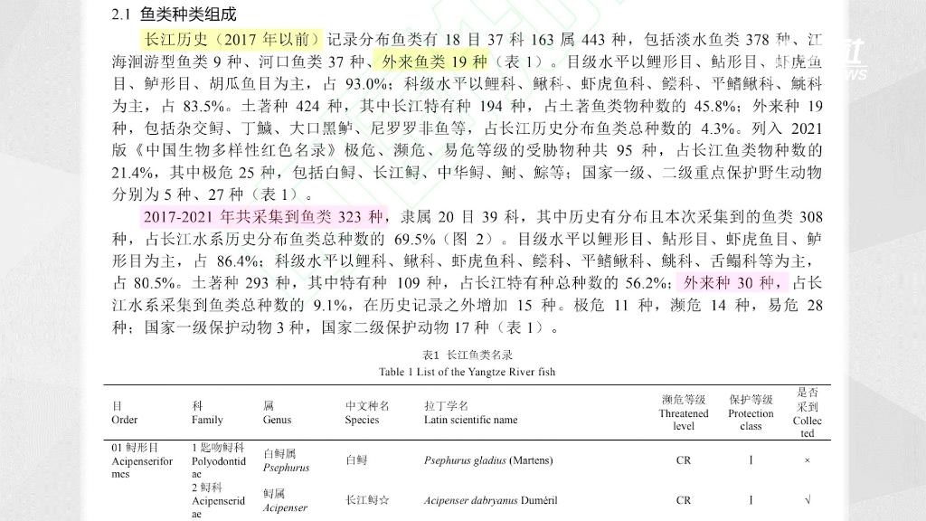 近年来,长江流域受外来物种入侵的潜在威胁加大。以农业农村部部署的第二轮“长江渔业资源与环境调查”为例,2017至2021年,共采集到鱼类323种,其中外来种30种。而在2017年以前,长江历史记录分布鱼类中,外来种为19种。