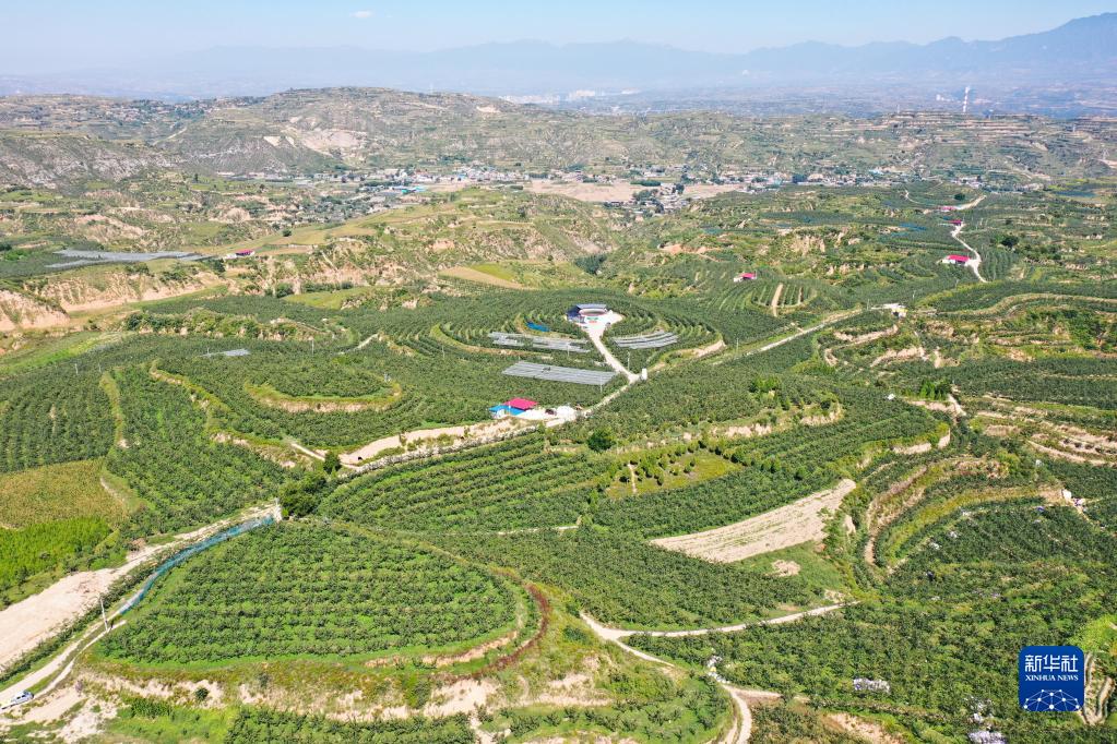 这是位于山西省汾西县的一处梨园(2022年9月12日摄,无人机照片)。新华社发(赵伟摄)