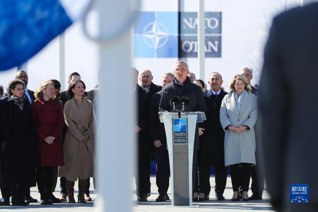 4月4日,在比利时布鲁塞尔的北约总部,北约秘书长斯托尔滕贝格在芬兰加入北约仪式上发言。新华社记者郑焕松摄