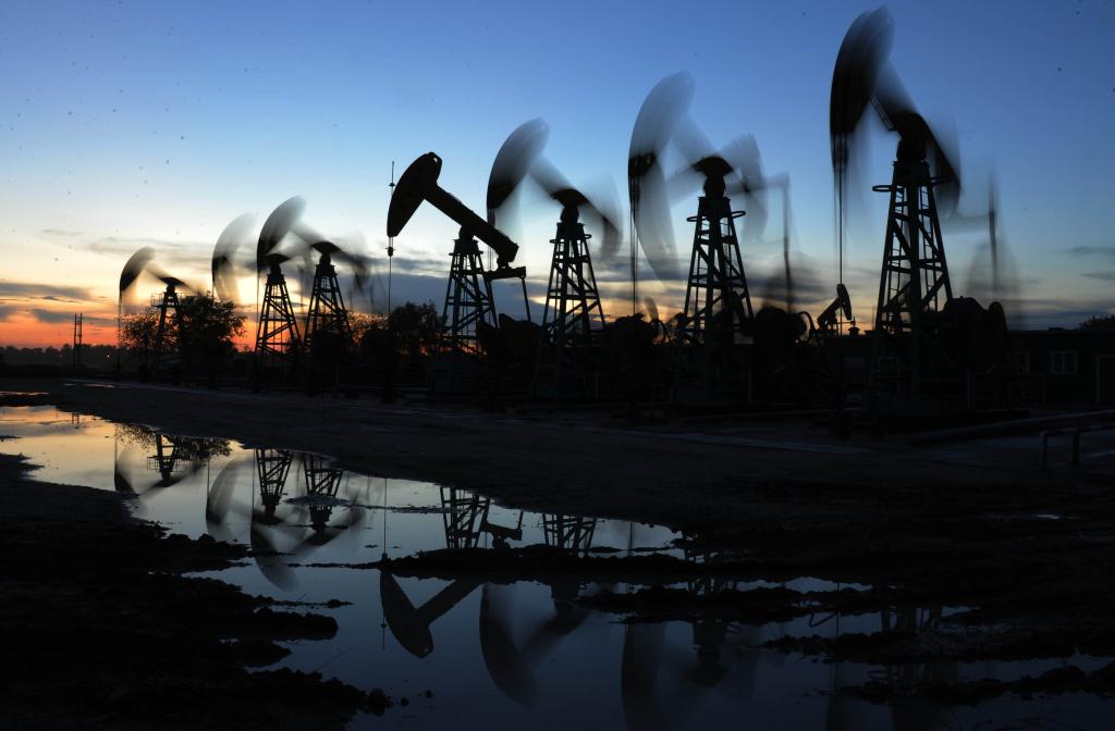 大庆油田采油机在夜色中工作。(新华社记者王建威摄)
