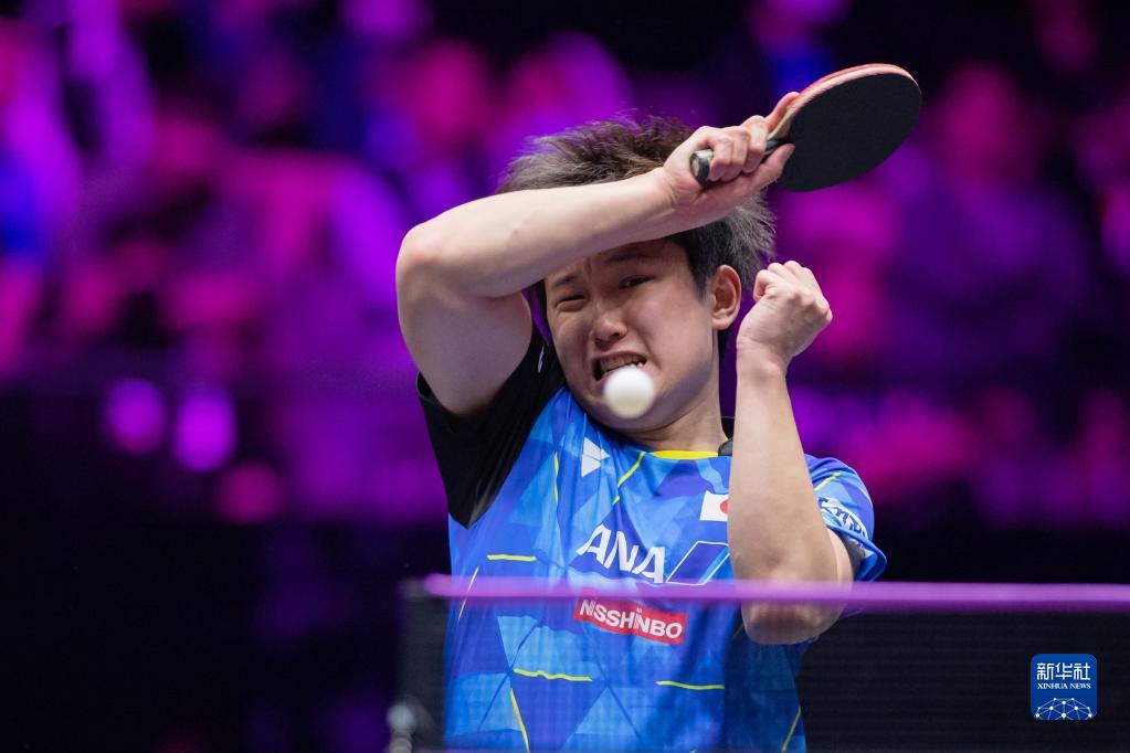 4月19日,日本选手张本智和在比赛中回球。新华社记者 张金加 摄