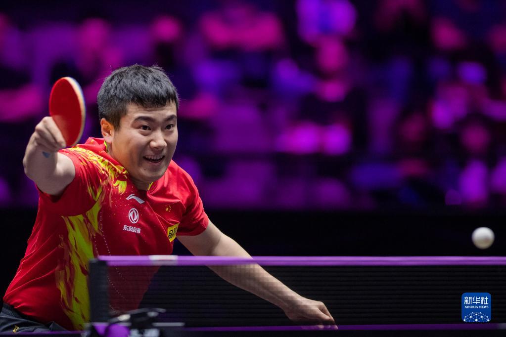 4月20日,中国选手梁靖崑在比赛中回球。新华社记者 张金加 摄