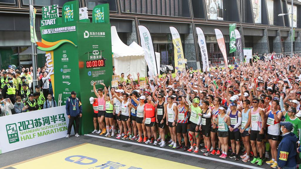 首次办赛的2023上海苏州河半程马拉松赛鸣枪起跑