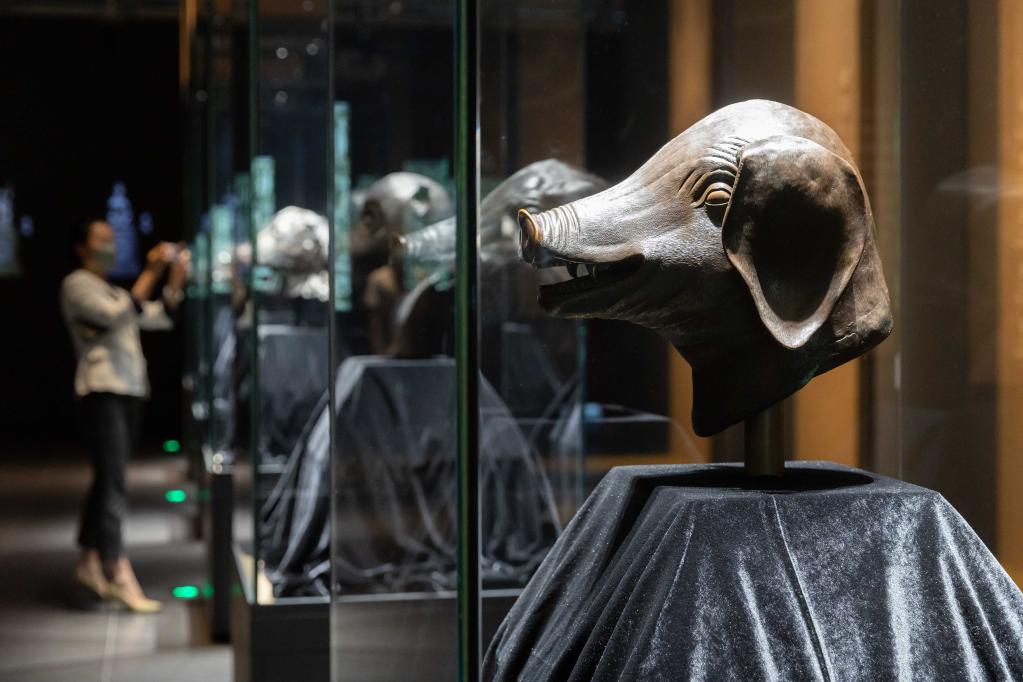 紧接着“乐居长安——唐都长安生活展”,2022年9月26日至12月18日,闵行博物馆携手保利艺术博物馆、北京市海淀区圆明园管理处共同打造“盛世回归——海外回流文物特展”,清代圆明园铜牛首、虎首、猴首、猪首及圆明园管理处所藏铜马首(复制件)以及神面卣、遂公盨、倗季凤鸟尊、立兔形典尊、昌邑食官鼎等42件海外回流青铜器。
