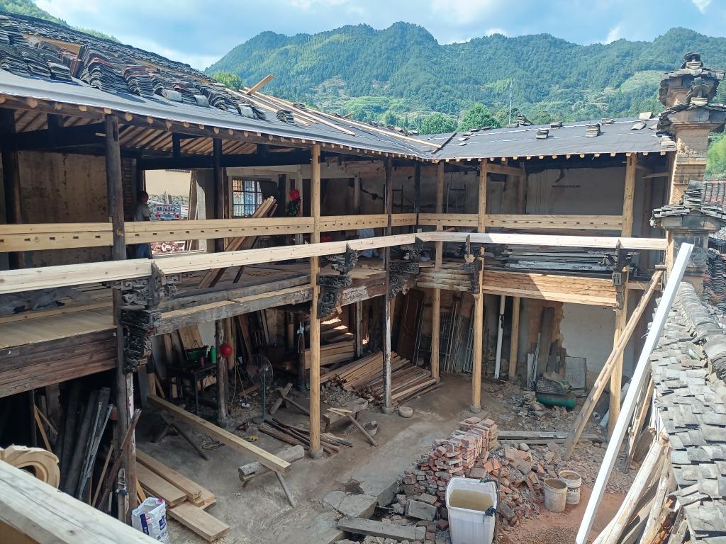 松阳县尹源村一处正在修缮的老屋。新华社记者李平 摄