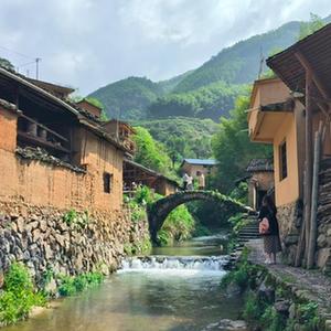 松阳县松庄村的溪流与石拱桥。新华社记者李平 摄