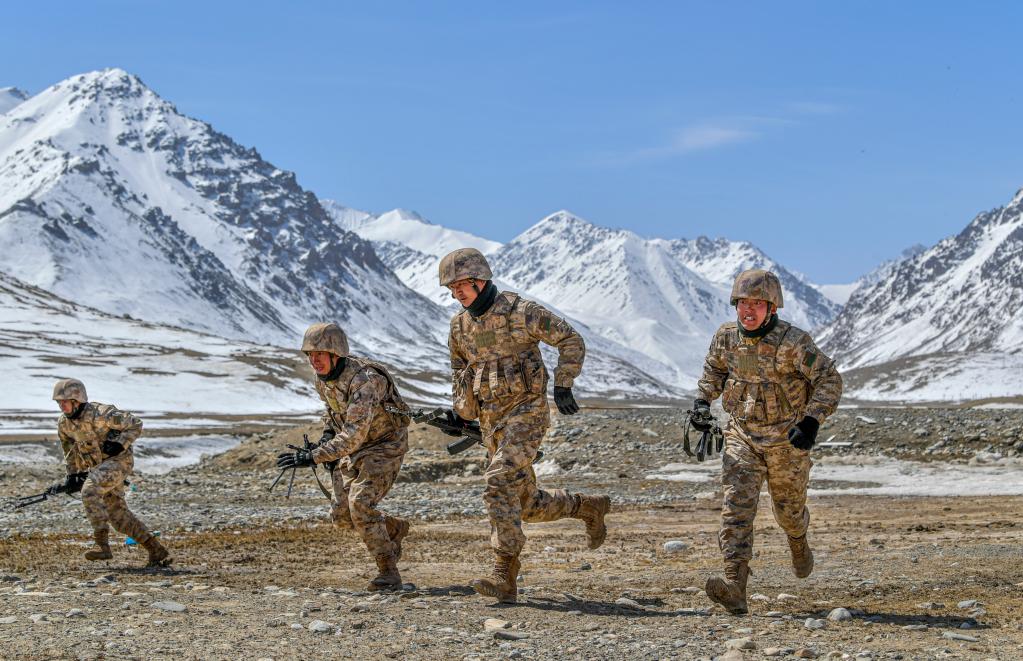 4月13日,边防连战士在进行训练。