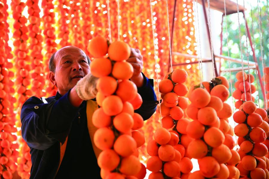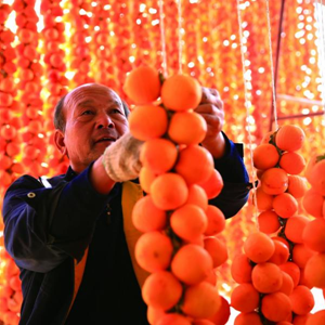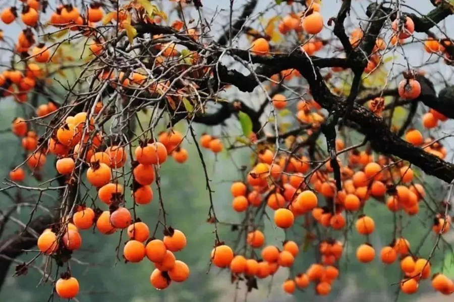 地处黄土高原和关中平原过渡带的渭南市富平县,是柿子优生区,每年霜降过后,一串串火红的柿子像灯笼挂满枝头,远远望去,满山遍野,像晚霞照映了整个田野。