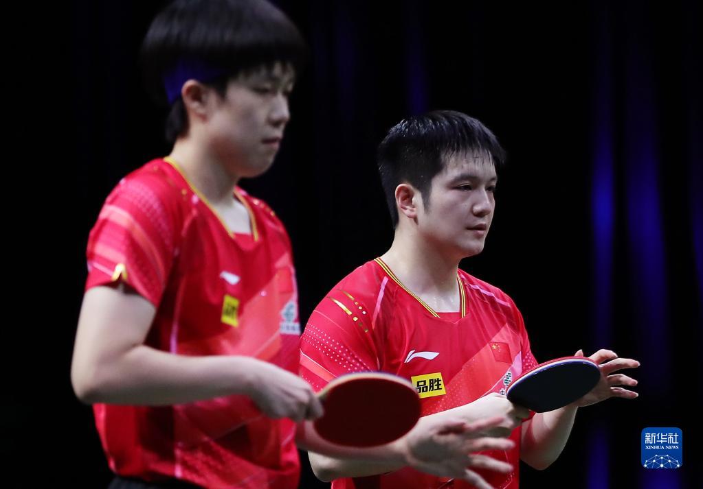 5月25日,樊振东/王楚钦(前)在比赛中。新华社记者 王东震 摄