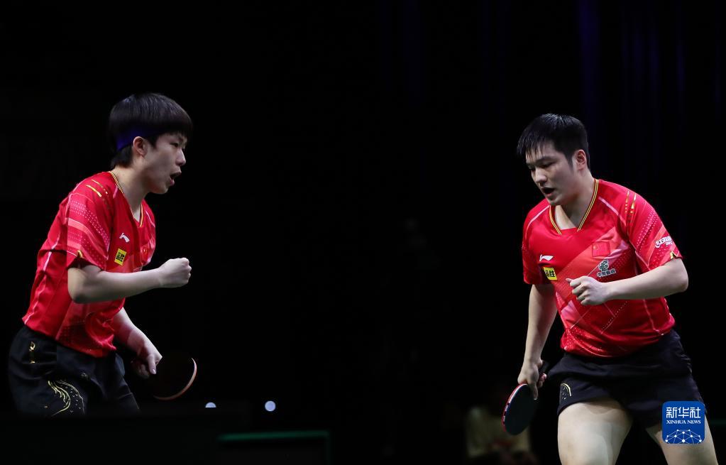 5月25日,樊振东(右)/王楚钦在比赛中庆祝得分。新华社记者 王东震 摄