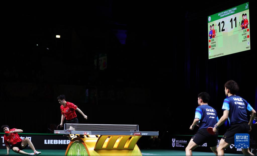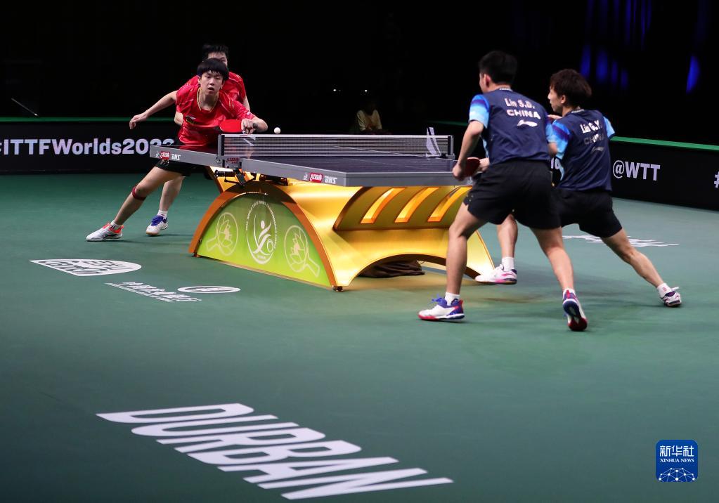 当日,在南非德班进行的2023年世界乒乓球锦标赛男子双打四分之一决赛中,中国组合樊振东/王楚钦以3比1战胜队友林高远/林诗栋,晋级四强。