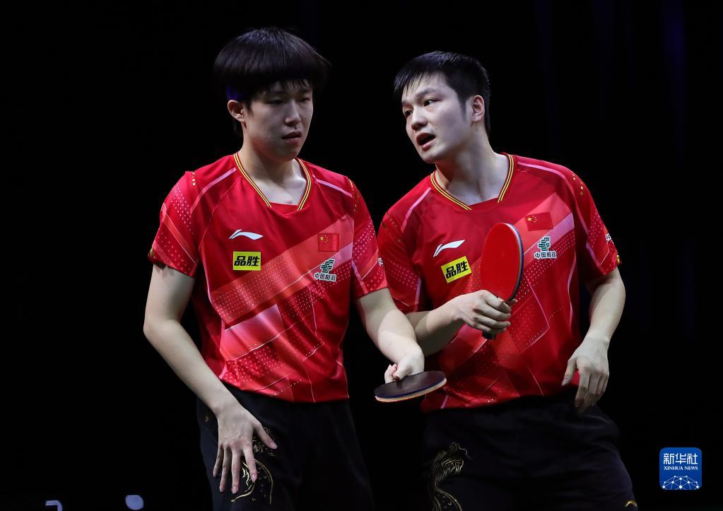 5月25日,樊振东(右)/王楚钦在比赛中。新华社记者 王东震 摄