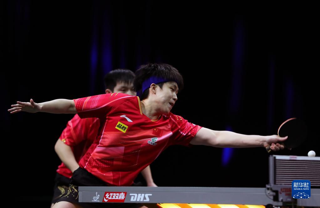 5月25日,樊振东/王楚钦(左前)在比赛中。新华社记者 王东震 摄