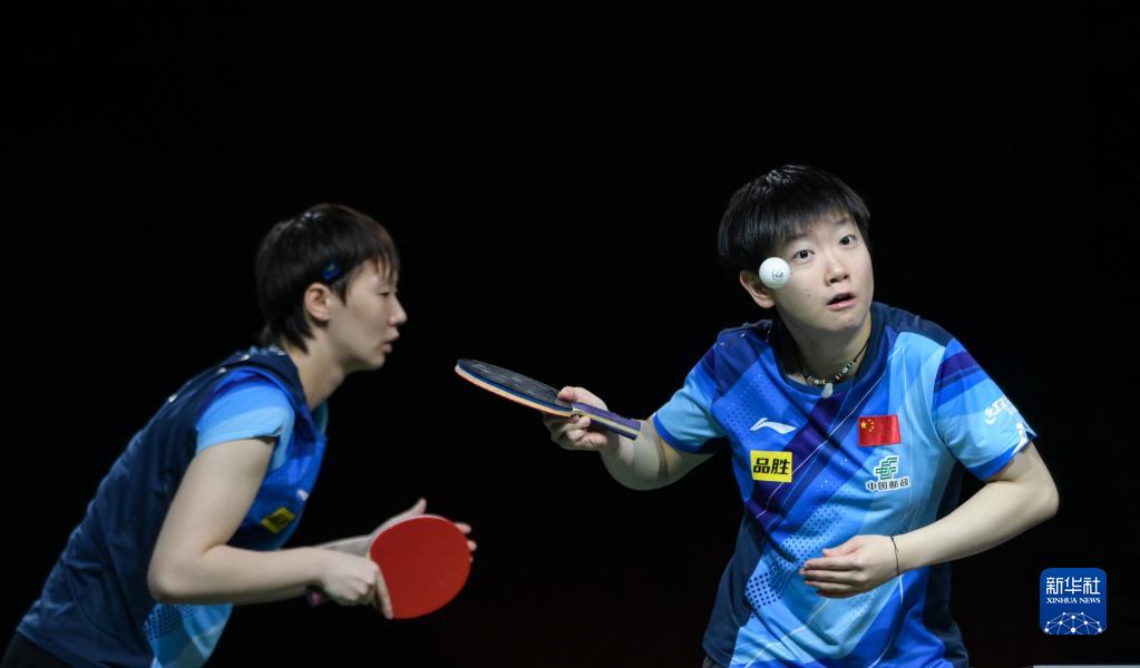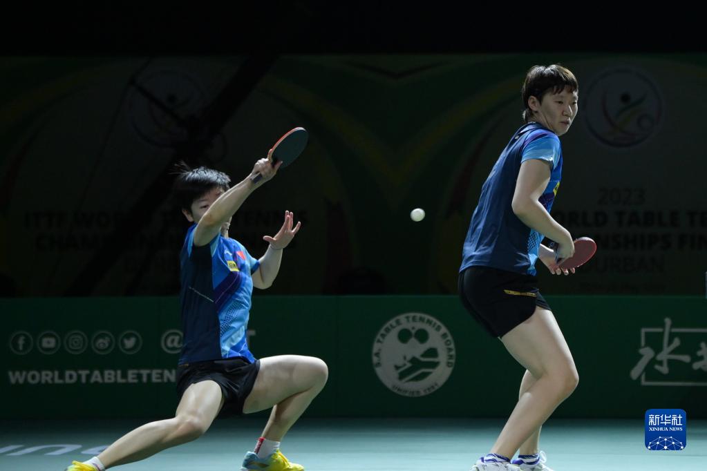 当日,在南非德班进行的2023年世界乒乓球锦标赛女双四分之一决赛中,中国组合王曼昱/孙颖莎以3比0战胜中国台北组合郑怡静/李昱谆,晋级半决赛。