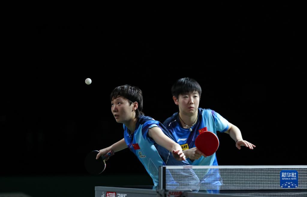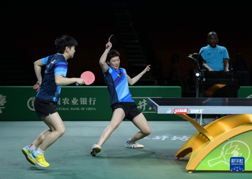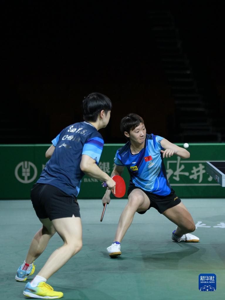 5月25日,中国组合王曼昱/孙颖莎(右)在比赛中。新华社记者 韩旭 摄