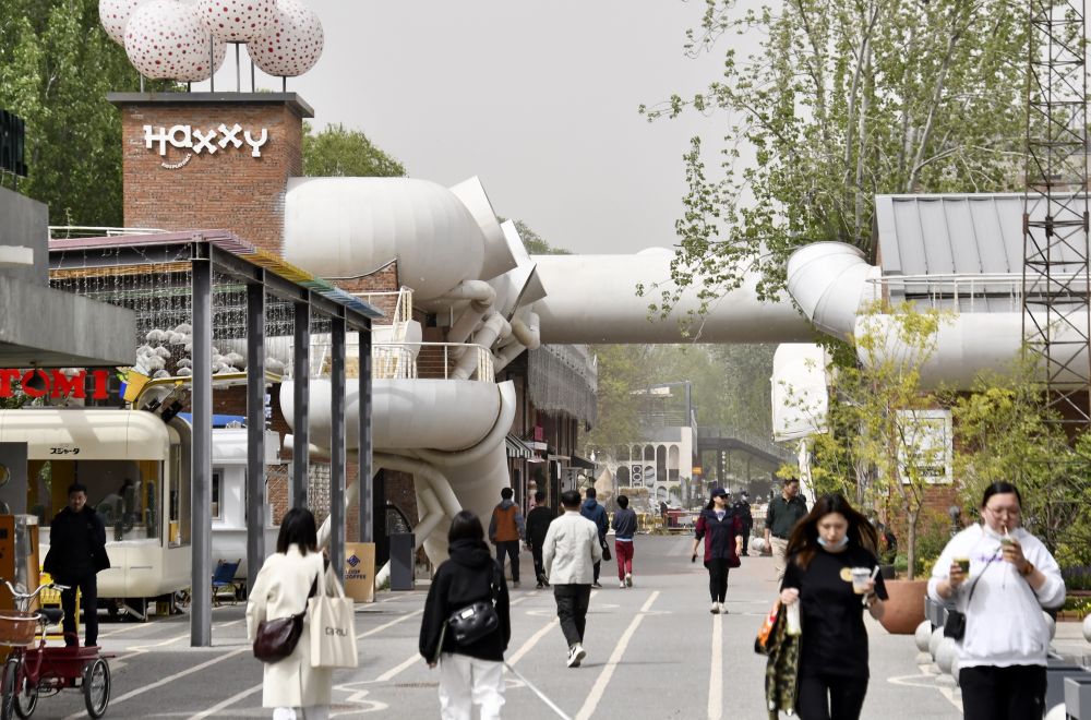 游人在老旧厂区改造的北京朗园文创园区参观(2023年4月12日摄)。新华社记者 李欣 摄