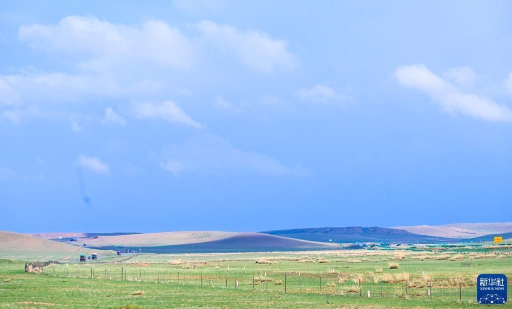 这是5月30日拍摄的内蒙古锡林郭勒盟苏尼特右旗境内的草原风光。