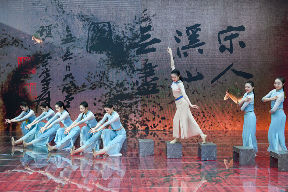 6月8日,文博会浙江展台为观众带来“光影万象 水墨江南”演出。新华社记者 梁旭 摄