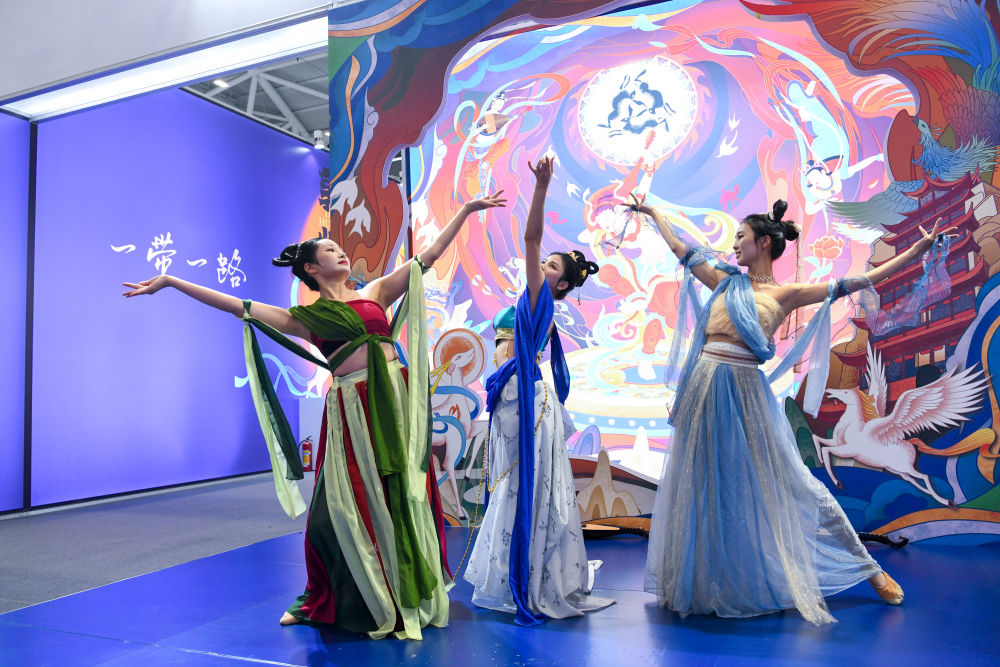 6月8日,舞蹈演员在文博会“文旅消费馆·一带一路国际馆”为观众呈现精彩表演。新华社记者 梁旭 摄