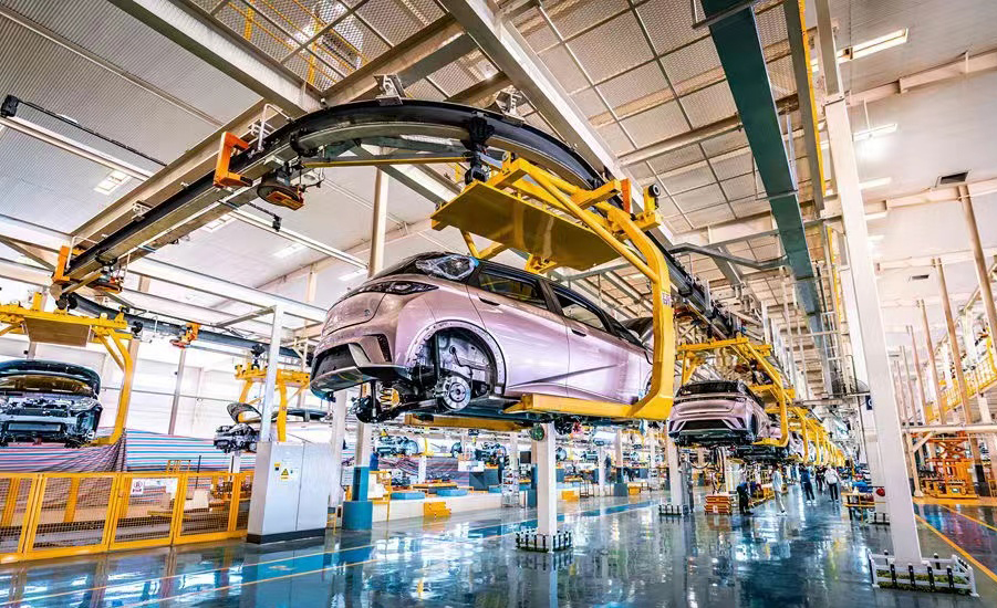 图为比亚迪集团全球总部总装车间。新华社记者周科 摄