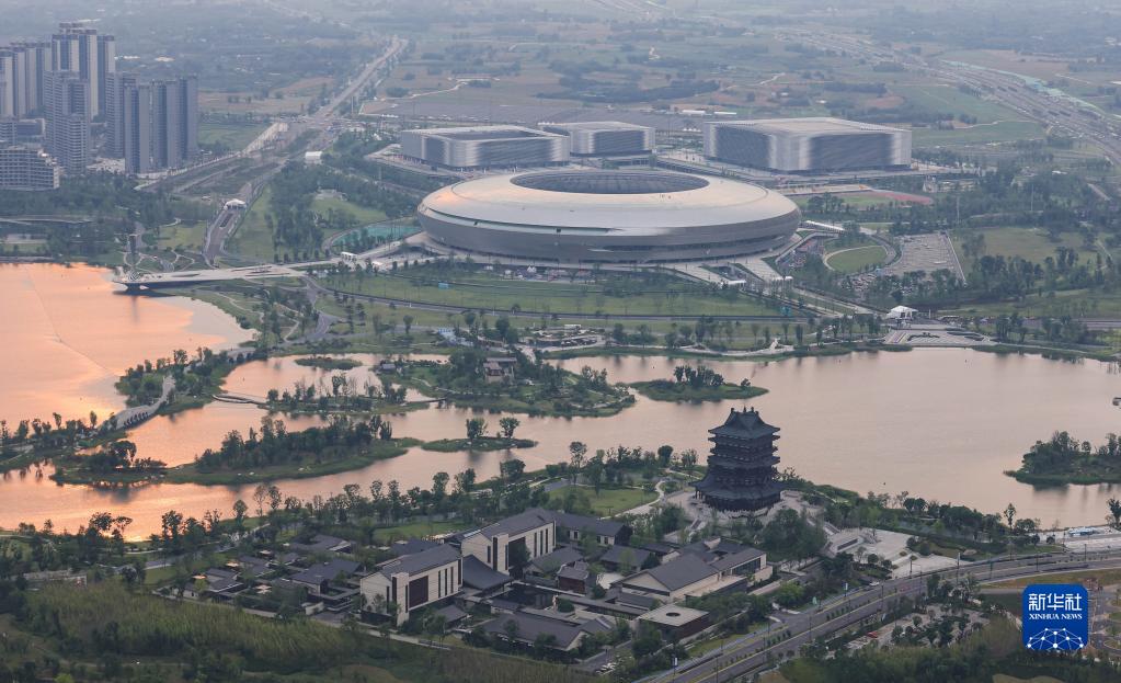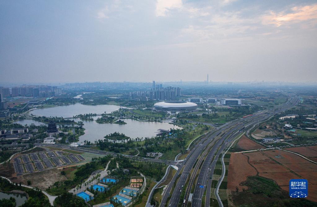 这是东安湖体育公园及通往成都市中心的蜀都大道东一段(6月27日摄)。新华社记者 江宏景 摄