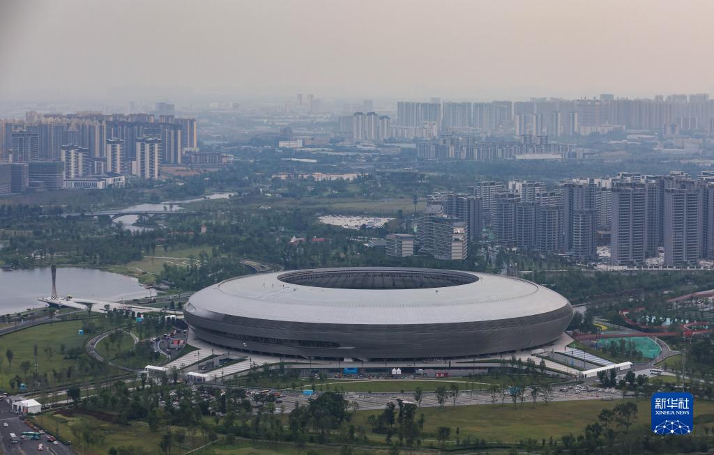 图为俯瞰东安湖体育公园主体育场(6月27日摄)。新华社记者 江宏景 摄