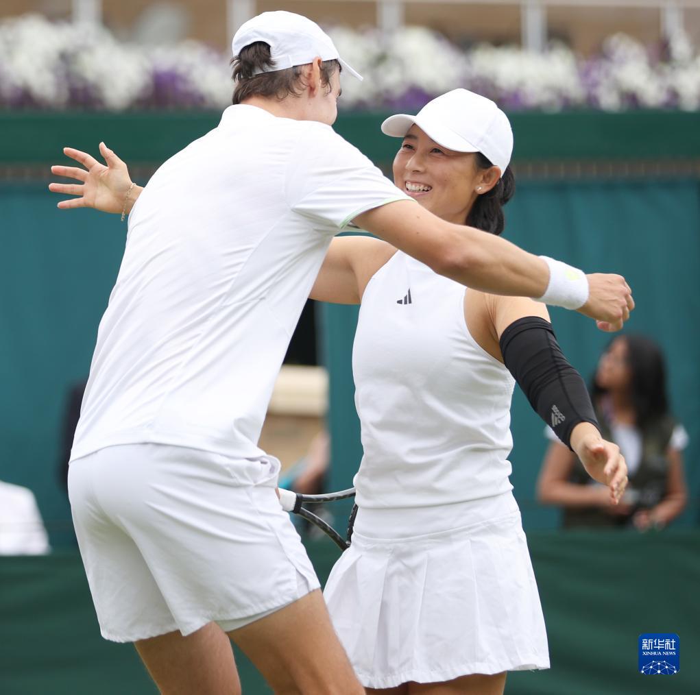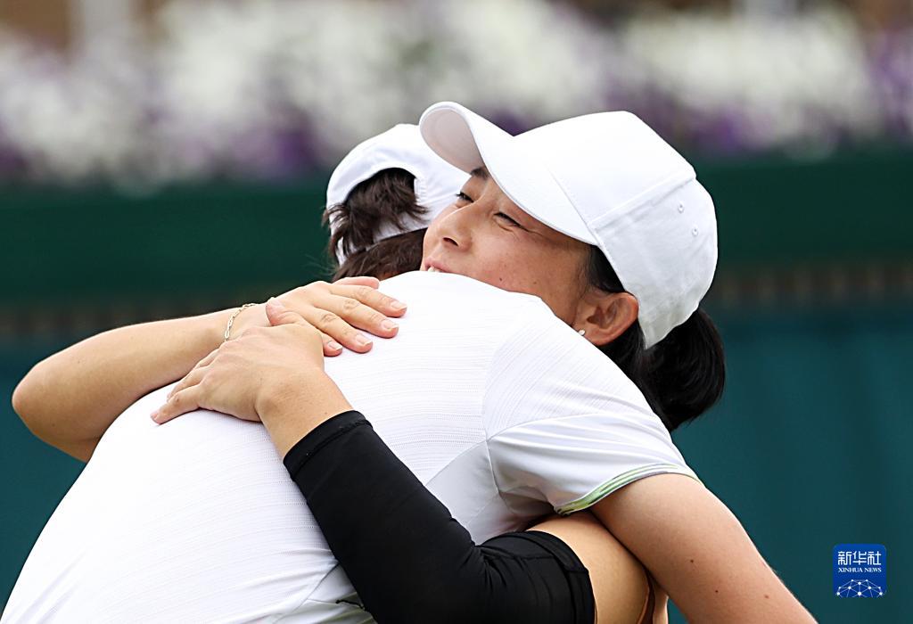 7月12日,徐一璠(右)/弗列根在获胜后庆祝。新华社记者 李颖 摄