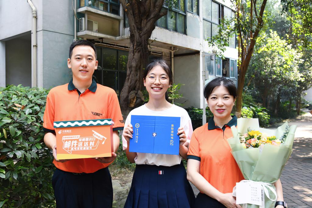 7月8日,四川省首封高考录取通知书送到赵心怡同学手中。四川邮政还为她精心准备了一份由邮政设计定制的大礼包,包含第31届世界大学生夏季运动会《荣蓉大运会》异形邮折、《蓉宝迎大运》明信片套装、《国风大运》纪念封、邮差形象盲盒四款大运会特色产品。(四川邮政万多多供稿)