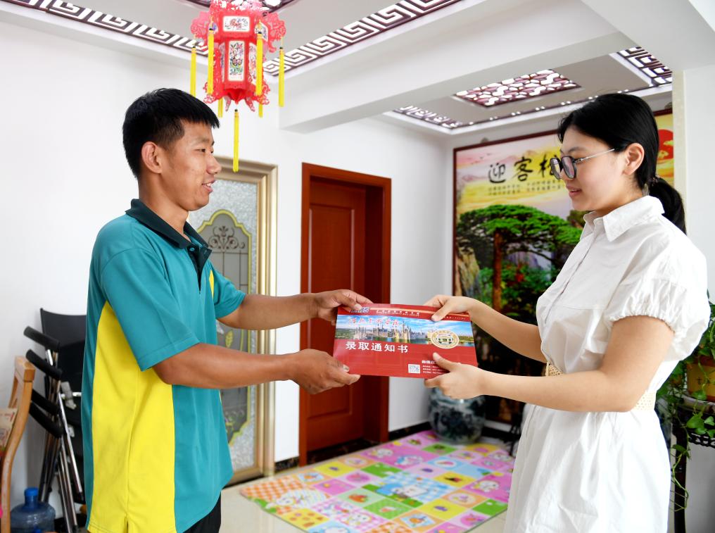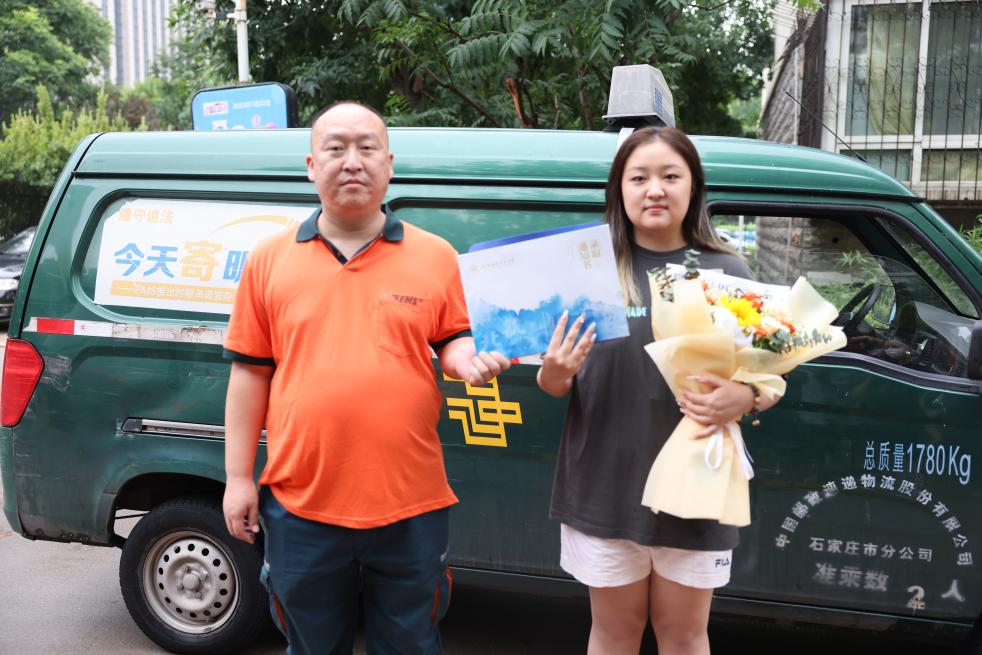 7月12日,河北省首封高考录取通知书被送到毕业于石家庄外国语学校的曹羽菲同学手中。曹羽菲说,自己对未来充满期待,也制定了目标,在大学期间将努力学习,提升自我,把基础打牢。(河北邮政程钰供稿)