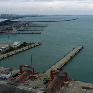 7月17日拍摄的空荡荡的海口新海港(无人机照片)。