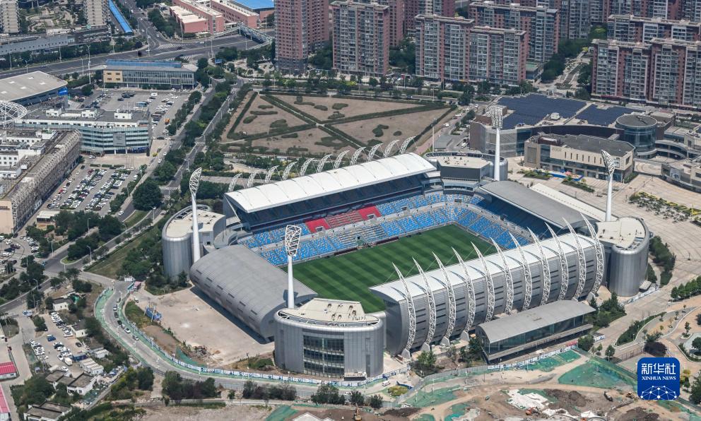 这是在直升机上拍摄的天津泰达足球场(6月16日摄)。