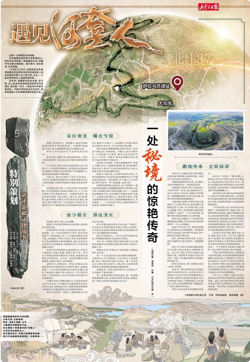 百年间,蕴藏着丰富古生物、古气候、古人类活动等地质信息的萨拉乌苏遗址,吸引着一代代、一批批中外专家学者奔赴。不断打开的远古文化记忆,刷新延展着人们对厚重浩瀚历史的认知。