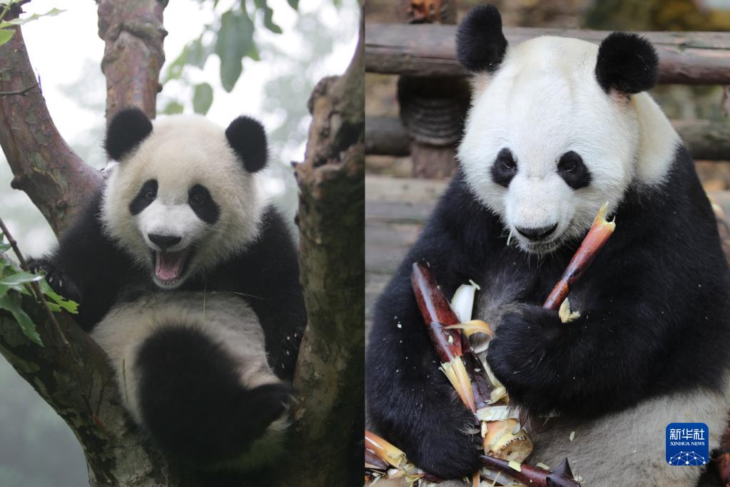 这是一张拼版照片:右图为大熊猫“娅娅”;左图为大熊猫“晶晶”。新华社发