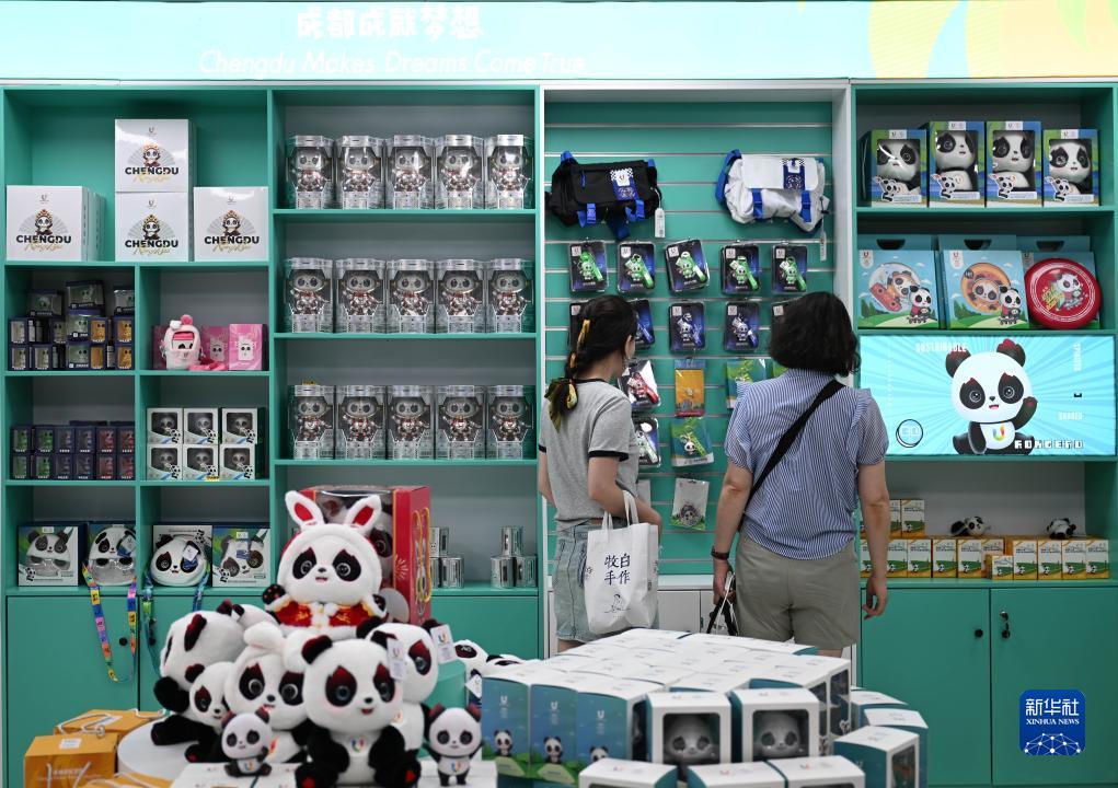 7月18日,市民在成都市一家成都大运会特许商品零售店内选购特许商品。新华社记者 胥冰洁 摄